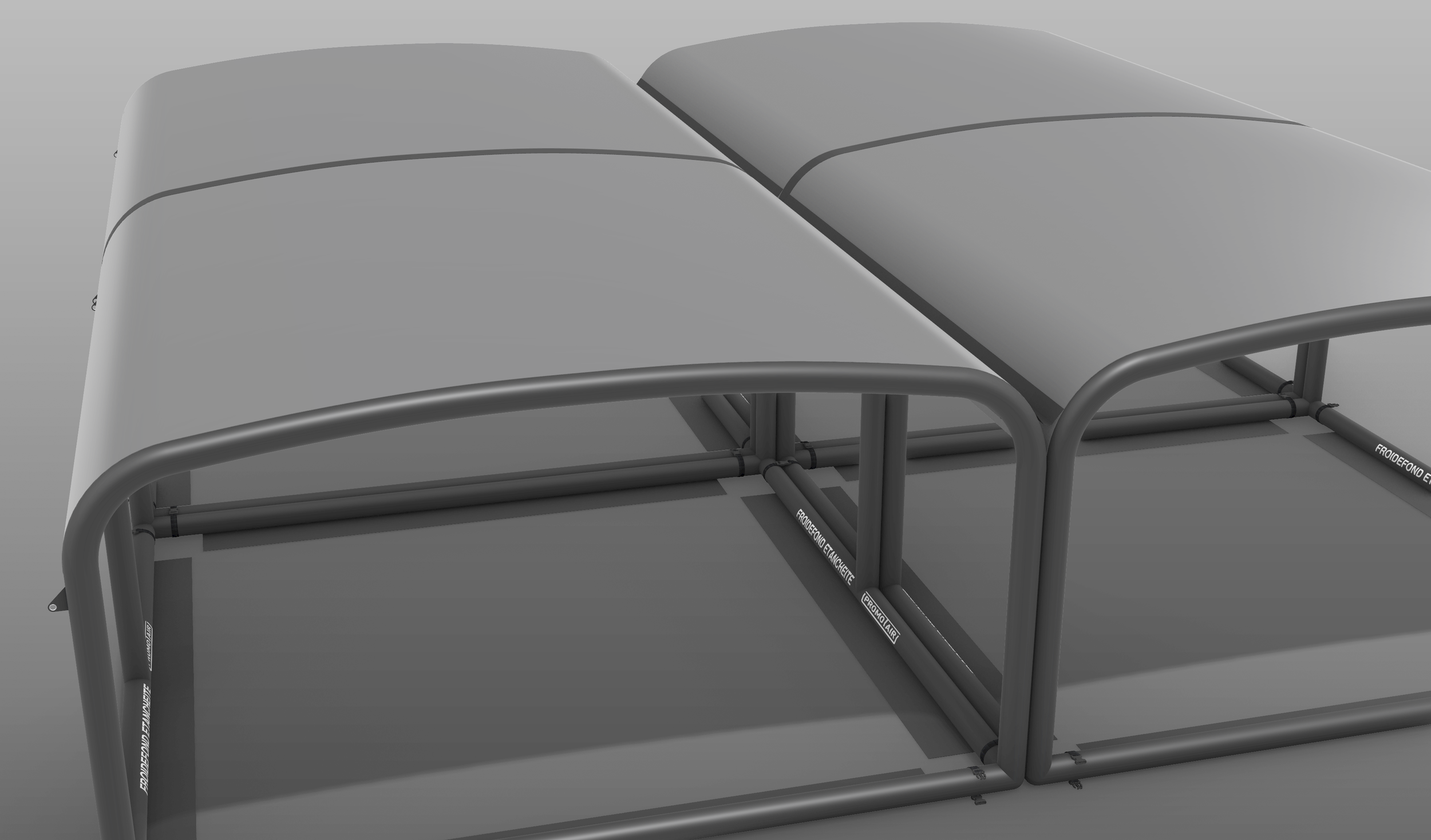 Elke zijde is afzonderlijk afsluitbaar en te configureren met ramen, ventilatie of gesloten panelen, waardoor de ruimte zich precies aanpast aan het beoogde gebruik. Dankzij een stil en uniek druksysteem blijft de PROMOTAIR constant op druk zonder continu pompgeluid, wat langdurig en geconcentreerd gebruik mogelijk maakt. Meerdere units kunnen naadloos worden gekoppeld in alle richtingen, inclusief doorlopende dak- en waterafvoer, zodat één afgesloten en uitbreidbare ruimte ontstaat.